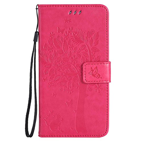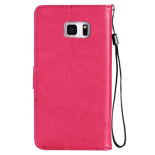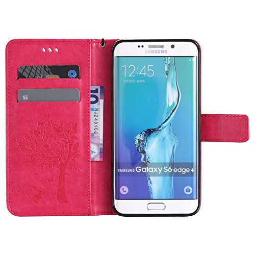 OMATENTI Samsung Galaxy S6 Edge Plus ケース, 100%手作り 高級PUレザー ケース 手帳型 保護ケース カード収納ホルダー付き 横置きスタンド機能付き マグネット式 Samsung Galaxy S6 Edge Plus ケース 手帳型 (ホットピンク)