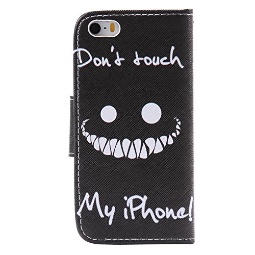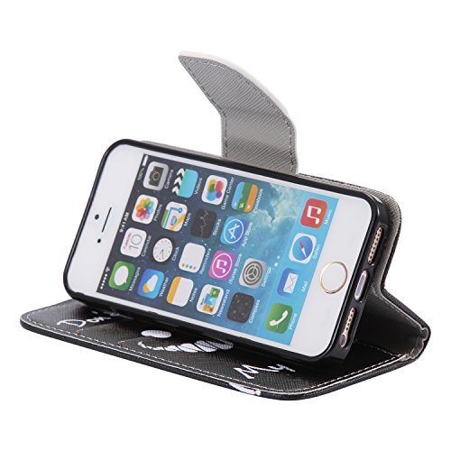 iPhone 5/ iPhone 5S ケース, OMATENTI Apple iPhone 5/5S 高級PUレザー ケース 手帳型 保護ケース カード収納ホルダー付き 横置きスタンド機能付き マグネット式 スマホケース (P6, ブラック)