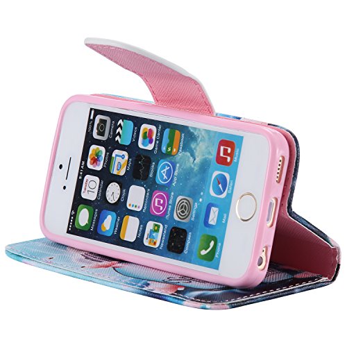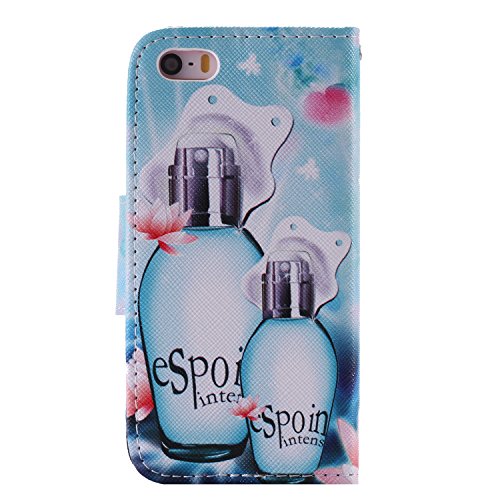 iPhone SE ケース, OMATENTI Apple iPhone SE 高級PUレザー ケース 手帳型 保護ケース カード収納ホルダー付き 横置きスタンド機能付き マグネット式 スマホケース (P12, ブルー)