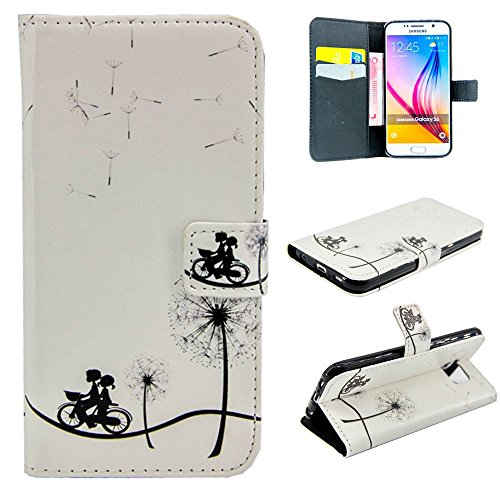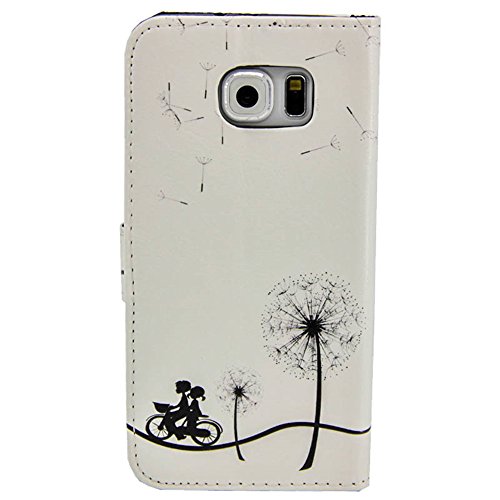OMATENTI Galaxy S6 ケース Samsung Galaxy S6 PUレザーケース 手帳型 スマートフォンケース スマホケース スタンド機能付き 耐衝撃 保護カバー [無期限生涯補償付き] (タンポポ, ホワイト#2)