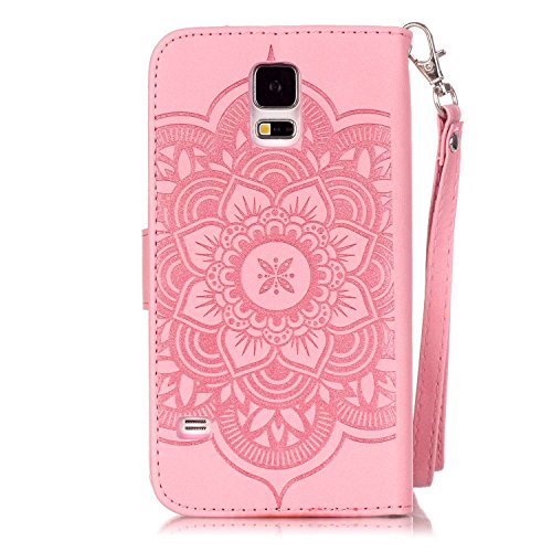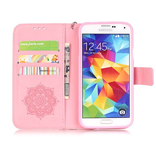 OMATENTI Galaxy S5 ケース, Samsung Galaxy S5 高級PUレザー ケース 手帳型 保護ケース カード収納ホルダー付き 横置きスタンド機能付き マグネット式 スマホケース [全8色] (ピンク P2)