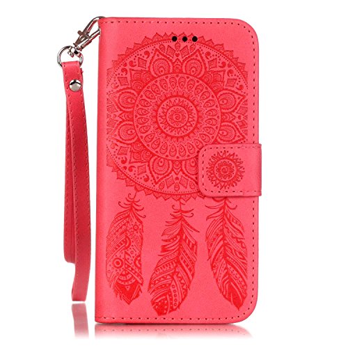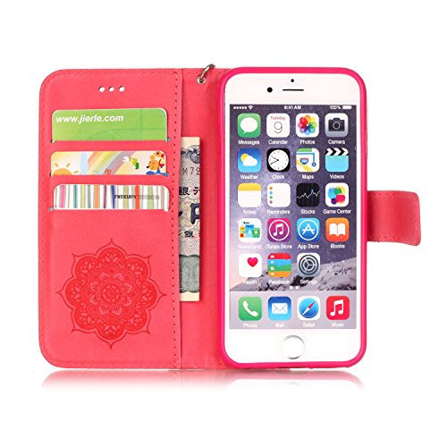 OMATENTI iPhone 6/ iPhone 6S ケース, Apple iPhone 6/6S 高級PUレザー ケース 手帳型 保護ケース カード収納ホルダー付き 横置きスタンド機能付き マグネット式 スマホケース [全8色] (レッド P1)