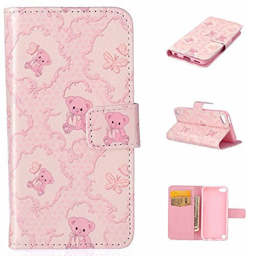 OMATENTI iPod Touch 6用 PUレザー手帳型ケース [無期限生涯補償付き] Apple iPod Touch 6th 財布型 スタンド機能 マグネット 手作り ハンドメイド カード収納 耐摩擦 耐汚れ 全面保護 フリップ 人気 横開き スマートフォン カバー (ピンク, P1)
