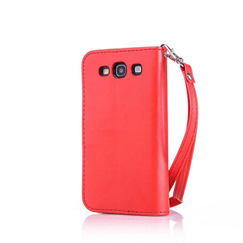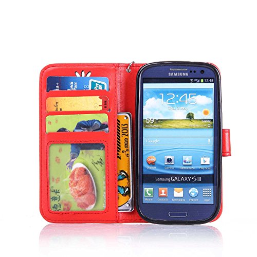 Galaxy S3 手帳型 OMATENTI 本革 カバー カードポケット スタンド機能 マグネット式 アイフォン Samsung Galaxy S3 用 財布型 カバー [全10色] (レッド)