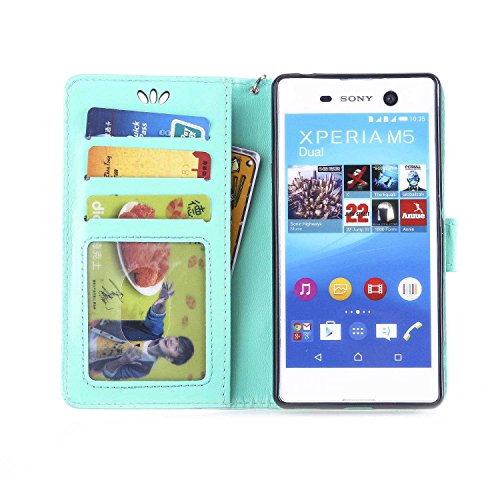 Sony Xperia M5 手帳型 OMATENTI 本革 カバー カードポケット スタンド機能 マグネット式 アイフォン Sony Xperia M5 用 財布型 カバー [全10色] (グリーン)