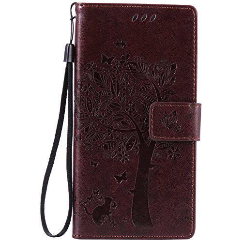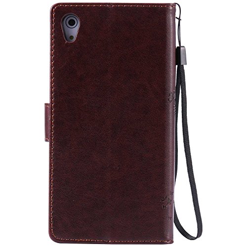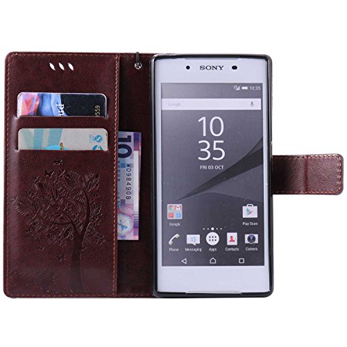 OMATENTI Sony Xperia Z5 ケース, 100%手作り 高級PUレザー ケース 手帳型 保護ケース カード収納ホルダー付き 横置きスタンド機能付き マグネット式 Sony Xperia Z5 ケース 手帳型 (ブラウン)