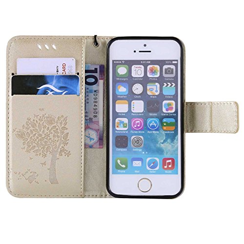 OMATENTI Apple iPhone 5/5S/SE ケース, 100%手作り 高級PUレザー ケース 手帳型 保護ケース カード収納ホルダー付き 横置きスタンド機能付き マグネット式 Apple iPhone 5/5S/SE ケース 手帳型 (ホワイト)