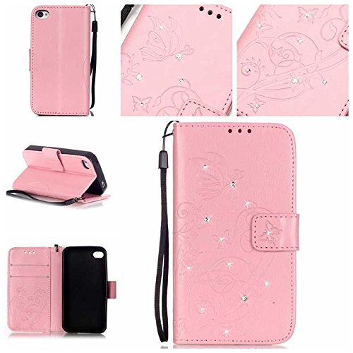iPhone 4 / iPhone 4s ケース OMATENTI 手帳型 財布型 マグネット式 PUレザー スタンド機能 カードホルダ付き 衝撃吸収 耐衝撃 保護カバー (4-ピンク)