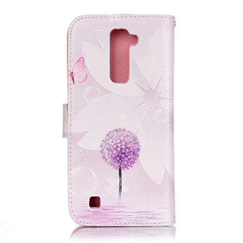 OMATENTI LG K8 用 PUレザー手帳型ケース [強化ガラスフィルムを無料で贈ります] [無期限生涯補償付き] 耐摩擦 耐汚れ 全面保護 フリップ 人気 横開き スマートフォン カバー (タンポポ)