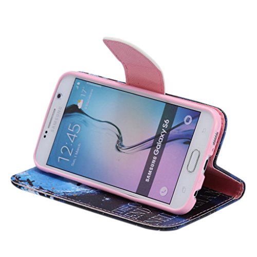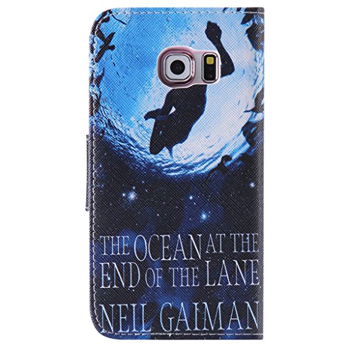 Galaxy S6 Edge ケース [強化ガラスフィルムを無料で贈ります], OMATENTI Smasung Galaxy S6 Edge 高級PUレザー ケース 手帳型 保護ケース カード収納ホルダー付き 横置きスタンド機能付き マグネット式 スマホケース (P7, ブルー)