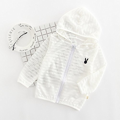 日焼け止め服 子供 ベビー ジャケット パーカー 男の子 女の子 紫外線対策 UV 対策 冷房対策 長袖 超軽量 通気性 快適 お出かけ 旅行 通園 ストライプ 春 夏 ホワイト 6色から選べる(omid) (100cm, ホワイト)