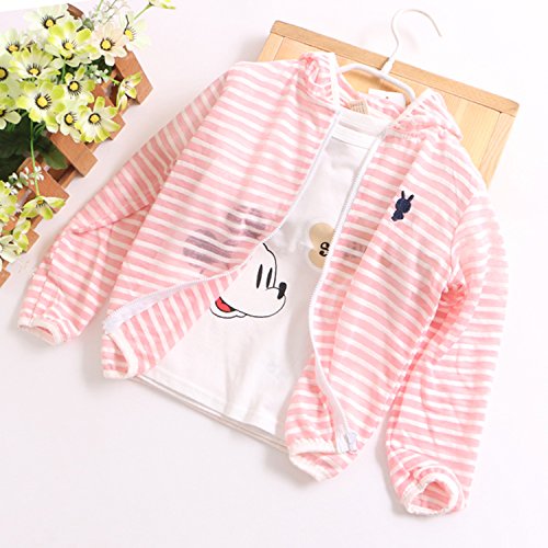 日焼け止め服 子供 ベビー ジャケット パーカー 男の子 女の子 紫外線対策 UV 対策 冷房対策 長袖 超軽量 通気性 快適 お出かけ 旅行 通園 ストライプ 春 夏 ホワイト 6色から選べる(omid) (90cm, ピンク)
