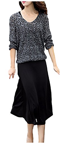 - セーターは薄手のため、ほぼ通年通して使えるかと思います。肌寒い時はインナーやカーディガン、やジャケットなどで温度調整なさってください。ストールなどでもいいですね。たまにはセットのロングワンピースではなく、お手持ちのキャミソールやタンクトップやスキニーパンツなどと合わせたら、違ったスタイルが完成!着こなしが増えて嬉しいのが2点セットの魅力ですね。