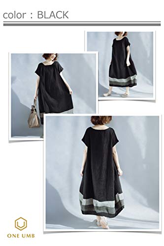 [ワン アンブ] OU25 BK XL 半袖 レディース 大きい チュニック サイズ マタニティ 綿 40代 ナチュラル 50代 エスニック 60代 ワンピース 春夏 夏 夏40代 夏物 夏用 ユッタリ 春用 カジュアル 女の子 ファッション ドレス ルームウェア パジャマ ロング丈 コットン 部屋着 ワンピ 授乳服 授乳 キレイメ ブルー ロング お宮参り 大きめ プルオーバー トップス カワイイ