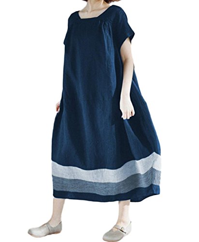 [ワン アンブ] ゆったり ロング ワンピース ドッキング リラックス 綿麻 大人 可愛い M ~ 2XL レディース (XXXL, ネイビー)