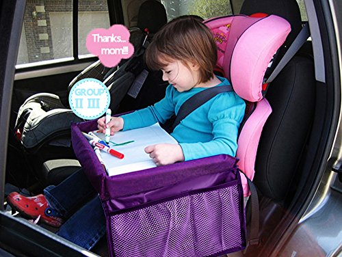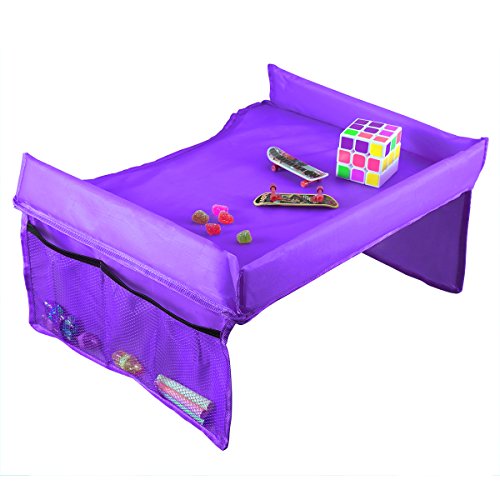 ONEDONE 折りたたみ チャイルドトレイ カーシート ベビーカー 撥水 簡易テーブル メッシュポケット付き (紫)