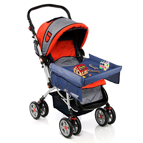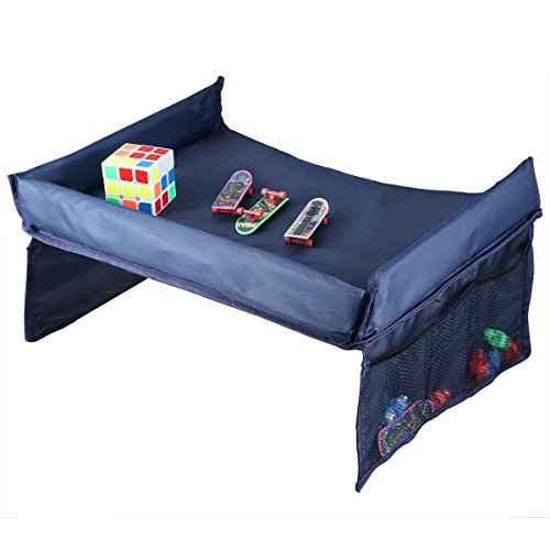 ONEDONE 折りたたみ チャイルドトレイ カーシート ベビーカー 撥水 簡易テーブル メッシュポケット付き (青)