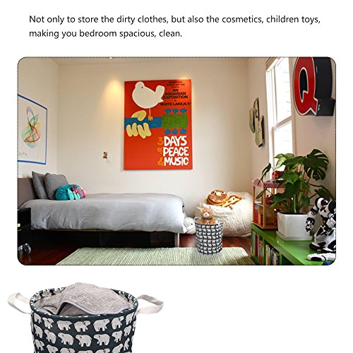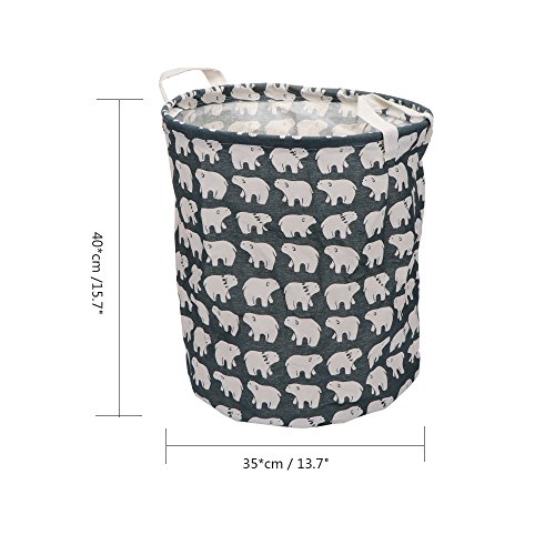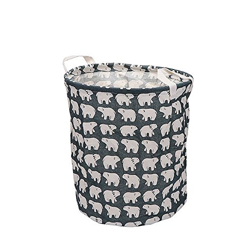 Collapsible Laundry Hamper、ONEVERコットンCylindric黄麻布キャンバスストレージバスケット服ストレージ/ Kids Toy Organizer with動物デザイン 13.7*13.7*15.7" (L*W*H) AW-569