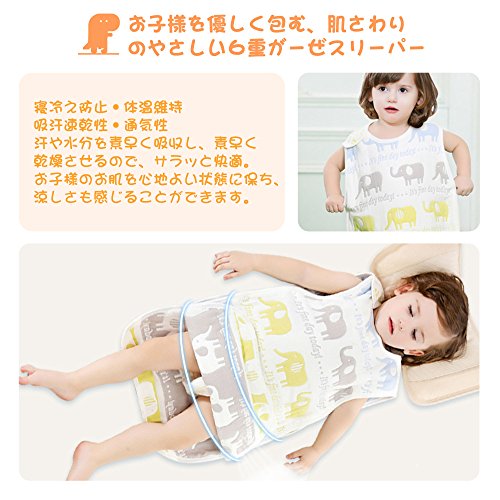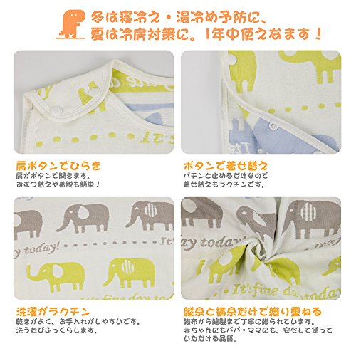 OOKISTORE ふわふわ6重ガーゼスリーパー 寝冷え防止 ボタン開閉式 吸水性・通気性・吸湿性・速乾性 夏冬 冷暖房対策 35*58 cm(新生児~3歳頃) (ぞう)