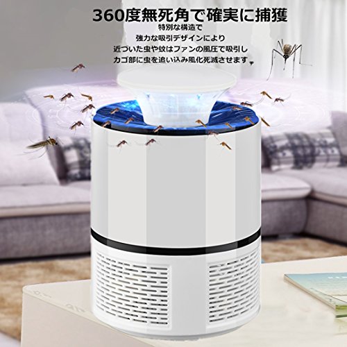 - 【確実に捕獲】特別な構造で、強力な吸引デザインにより、近づいた虫や蚊はファンの風圧で吸引し、カゴ部に虫を追い込み風化死滅させます。