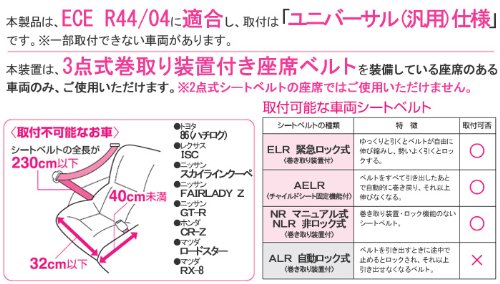新生児ベビーシート チャイルドシートとしてだけでなく、ゆりかご,ベビーキャリーとしてお使い頂けます。 家の中、外出先で生活シーンに合わせてお使い頂けます。車の中、外出先で寝てしまった赤ちゃんを起こすことなく、簡単に移動が出来ます。 本製品は、ECE R44/04に適合し、取付は「ユニバーサル(汎用)仕様」です。※一部取付できない車両があります。 本装置は、3点式巻取り装置付き座席ベルトを装備している座席のある車両のみ、ご使用いただけます。 ※2点式シートベルトの座席ではご使用いただけません。 【取付不可能なお車】 ・トヨタ 86(ハチロク) ・レクサス ISC ・ニッサン スカイラインクーペ ・ニッサン FAIRLADY Z ・ニッサン GT-R ・ホンダ CR-Z ・マツダ ロードスター ・マツダ RX-8 【取付可能なシートベルト】 ・ELR 緊急ロック式 (巻き取り装置付) ゆっくりと引くとベルトが自由に伸び縮みし、勢いよく引くとロックする。 ・AELR (チャイルドシート固定機能付) ベルトをすべて引き出したあとで自動的に巻き戻り、それ以上伸びなくなる。 ・NR マニュアル式・NLR 非ロック式 (巻き取り装置付) 巻き取り装置・ロック機能のないシートベルト。 ・ALR 自動ロック式 (巻き取り装置付) ベルトを引き出すときに途中で止めるとロックされ、それ以上引き出せなくなるベルト。 ■対象年齢:新生児~1歳頃まで(体重13kgまで) 【マムズキャリーブライト】