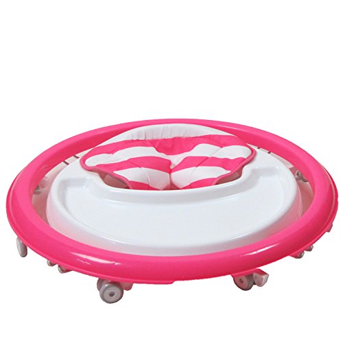 丸い形の歩行器だから安全!! 丸い形の安全設計で、座席が中心にあることにより、赤ちゃん本位の機能性・実用性にとんだ軽量歩行器です!! コンパクトに折りたたむこともできます。 床を傷つけにくく静かな消音キャスターを採用。 股ベルトで高さを調節できます。