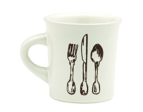Decorated with an embossed fork, knife and spoon;Great teacher appreciation gift;Made of dinnerware quality stoneware;Mug holds 1 cup;Measures 3.125 diameter by 3.5 tall