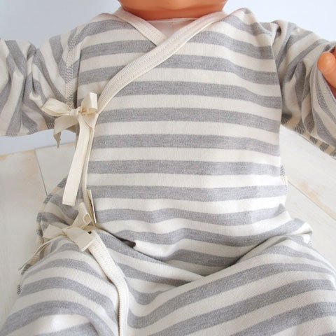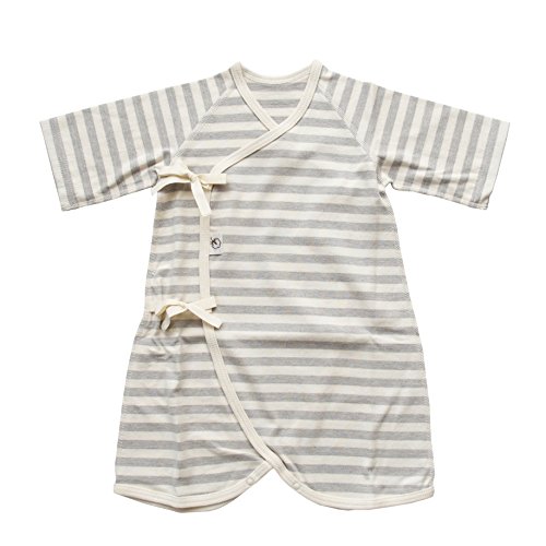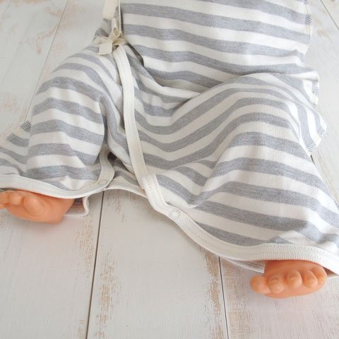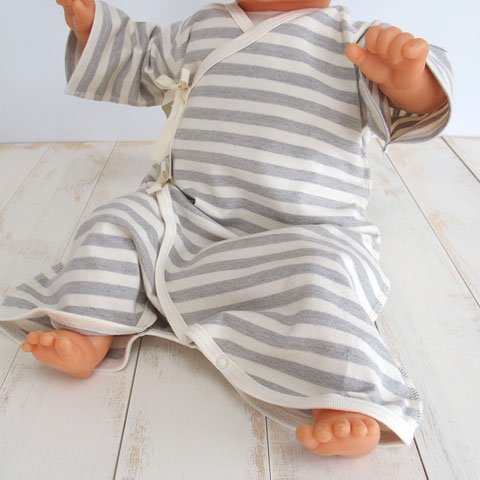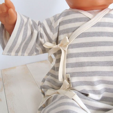 オーガニックコットン 日本製 ベビー用ひも結びタイプ ボーダーコンビ肌着 グレー ORGANIC GARDEN オーガニックガーデン