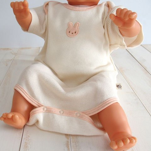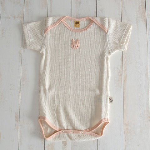 オーガニックコットン 日本製 ベビー用半袖 ワッフルボディウェア ロンパース ピンク ORGANIC GARDEN オーガニックガーデン