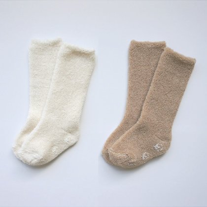 - 表側がふんわりやわらかなパイル編みの、オーガニックコットン使用べビーハイソックスです。パイル生地なので温かくよく伸びるので膝下全体にフィットします。