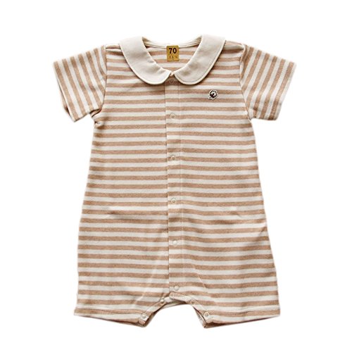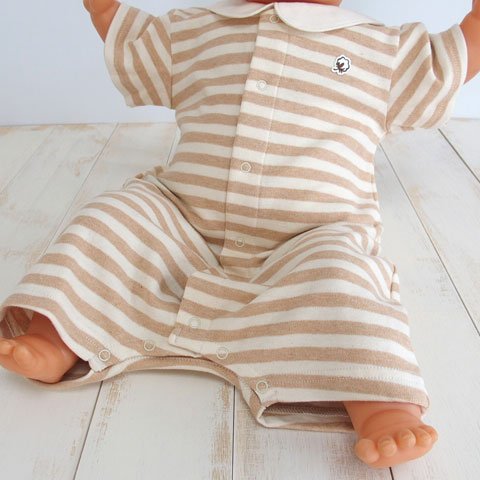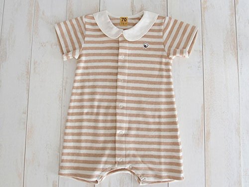 オーガニックコットン 日本製 ベビー赤ちゃん用 ボーダー半袖セラーオール ブラウン ORGANIC GARDEN オーガニックガーデン
