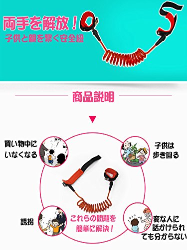 origin 迷子防止紐 ハーネス 伸び縮可 軽量 ワイヤー 事故防止 2m 手首部分柔らかい素材 360度自由回転 スーパー/フェス/イベント/遊園地や花火大会などに 迷子防止縄 JC303M2