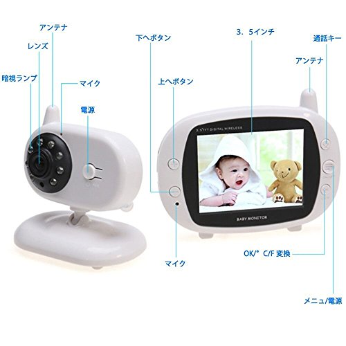 - 【3.5インチ液晶画面搭載】 本体はバックライト付き3.5インチ液晶画面搭載。モニター側の充電池内蔵で持ち運びも便利です。モニターで最大300メートルまで赤ちゃんのことと部屋の様子が見え、遠隔操作実現します