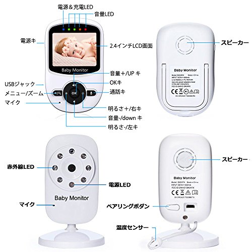 OSEI ベビーカメラ ビデオベビーモニター 監視カメラ 2.4GHzデジタルワイヤレス 看護カメラ+リモコンセット 音楽 子守唄 ボイスセンサー搭載 暗夜用 双方向音声通信可能 年寄り介護 子育て応援アイテム (2.4インチ)