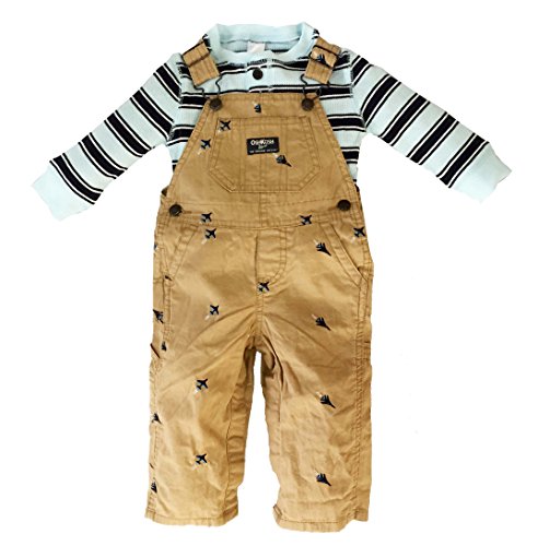 OSH KOSH(オシュコシュ) B'gosh ベビー ボーイズ オーバーオール / 長袖ロンパース 2Pセット Schiffli Fighter Jet Canvas Overalls / Thermal Henley Bodysuit (12M(75))