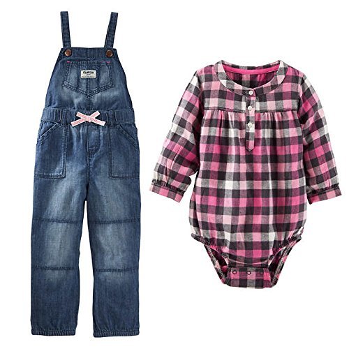 OSH KOSH(オシュコシュ) B'gosh ベビー ガールズ オーバーオール / 長袖ロンパース (ピンクチェック) 2Pセット 2-piece Overall Set (18M(80))