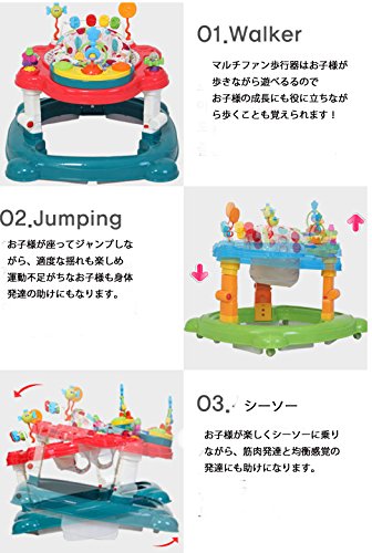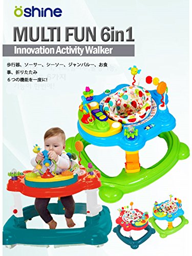 [OSHINE]オーシャイン MULTI FUN マルチファン6in1 歩行器 ジャンパルー シーソー ソーサー 離乳食トレイ 折り畳み式〔並行輸入品〕 (レッド&ブルーグリーン)
