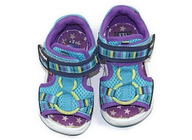 本体に記名跡あるため、星を一つ減らしています。星柄のかわいいサンダルです。実際のサイズ表記は12.5EEです。ほつれや汚れ、型崩れあり。お手入れ次第でまだまだお使いいただけそうです。(記名あり)