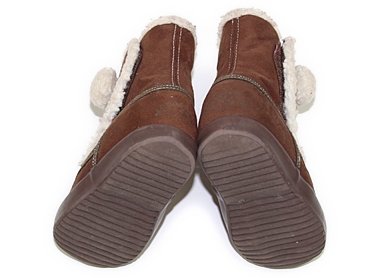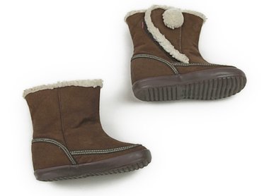 - フェイクスウェードブーツ。14.5cmサイズです。マジックテープにピンクの毛羽が付着しています。つま先にスレ・アッパーに小傷や小さな汚れがありますがキュートなデザインでまだまだ活躍してくれそうです。