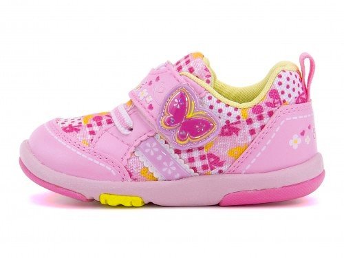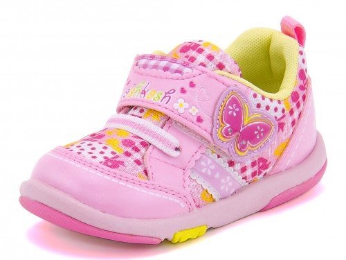 パッチワーク風のデザインがキュートなキッズスニーカー☆アウトソールにはフレックスジョイントを採用し、足の指の付け根で曲がりやすく、歩行をサポート♪ゴム紐&面ファスナーで脱ぎ履きしやすく、インソールは取出して洗えるのでいつも清潔に保てます!※展開サイズ:キッズ