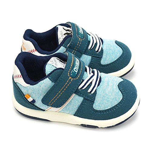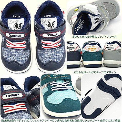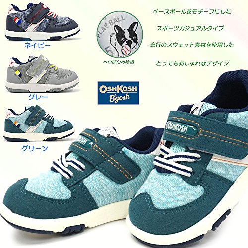 [オシュコシュ] OSHKOSH B405 子供スニーカー ベビーシューズ マジック式 軽量 カップインソール スウェット素材 ベースボール スポーツカジュアル 男の子用 グリーン 13.5cm