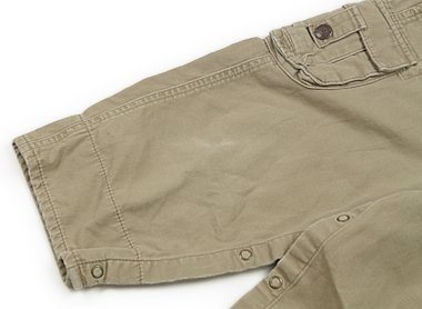 実際のサイズ表記は24Mです。しっかりしたコードレーン風の生地。全体に色褪せがあり、裾付近に点々とシミ・スレ感があります。インナーでいろいろ楽しんでいただけそうです。