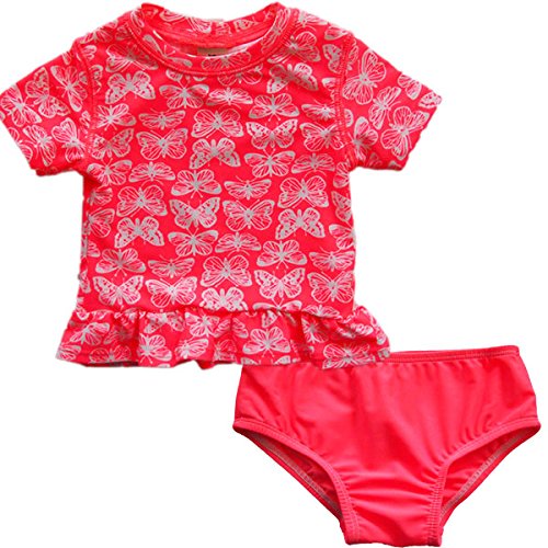 オシュコシュ(Oshkosh B'gosh)2015年 女の子用パステルピンクバタフライ半袖ラッシュガード水着上下2点セット(18months(78-83cm)) [並行輸入品]