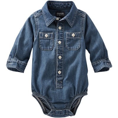オシュコシュ OSHKOSH/ 2ポケットデニムボディスーツ ブルー ロンパース長袖 18ヶ月【並行輸入】