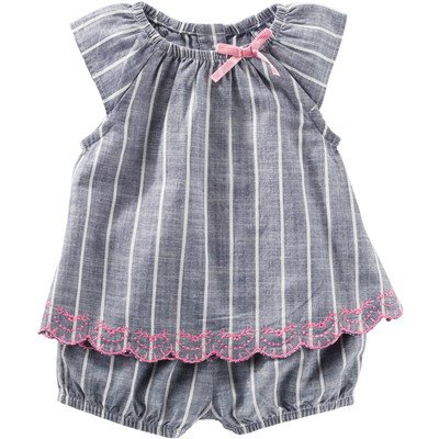 オシュコシュ OSHKOSH/ ストライプシャンブレーベビードールセット カラー ロンパース半袖 9ヶ月【並行輸入】
