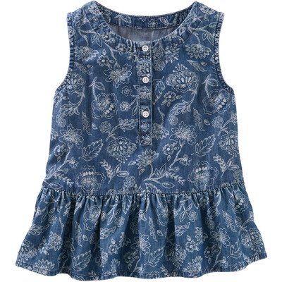 OSHKOSH(オシュコシュ) プリントシャンブレーペプラムトップ シャンブレー トップス半袖シャツ 2歳【並行輸入】