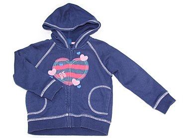 ハートのデザインがかわいいパーカーです。部分的に色褪せがあります。外遊びや洗い替え用にいかがでしょうか?