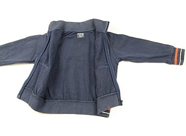 - 品質表示タグに記名があります。全体的な色落ち、衿周りのスレによる色落ちなどがあります。しっかりとした作りですので、公園用としていかがでしょうか。(記名あり)