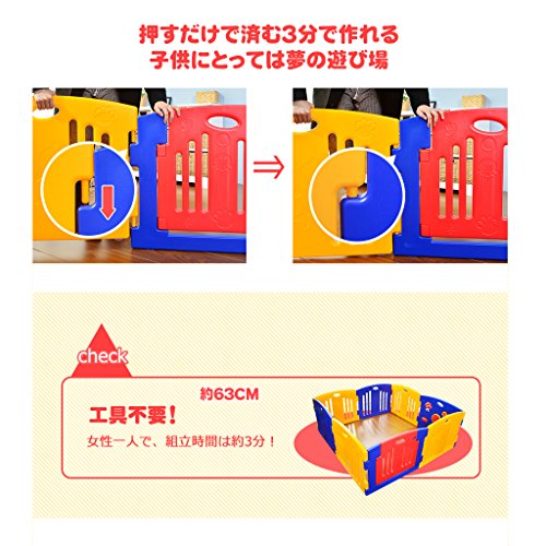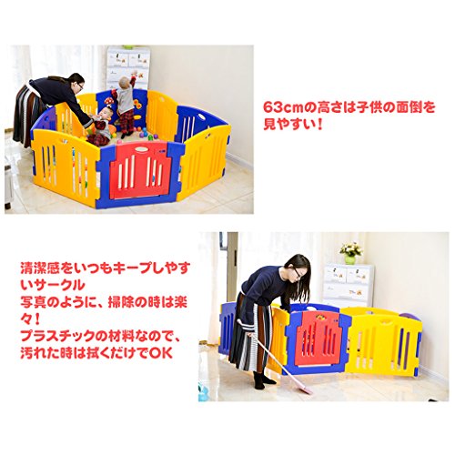 OSJ ベビーサークル トイパネル 8枚セット 差し込むだけの組み立て 高さ63cm ロック付きのドア 吸盤付き 子供を守る