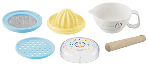 みんなが大好き♪ドラえもんグッズからベビー離乳調理セットが登場です!こす・おろす・絞る・すりつぶすなど離乳食をカンタンに手作りできる調理セットです!果汁絞り・こし網・おろし器を逆さにして、すり鉢にセットしてフタをかぶせるとコンパクトに収納できます♪すり鉢の底にはすべりにくい足ゴムが付いていて使いやすいよ!